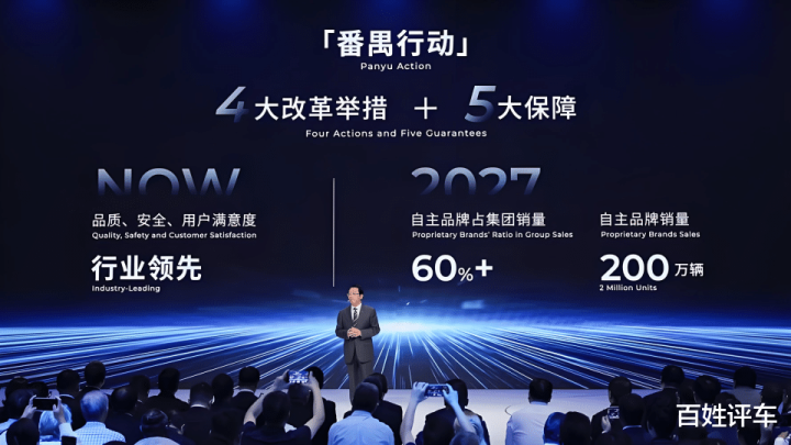 "番禺行动"目标到2027年实现自主品牌销量占集团总销量的60%以上,挑战自主品牌销量突破200万辆。该行动聚焦品牌重塑、产品创新、技术升级和国际市场拓展。
